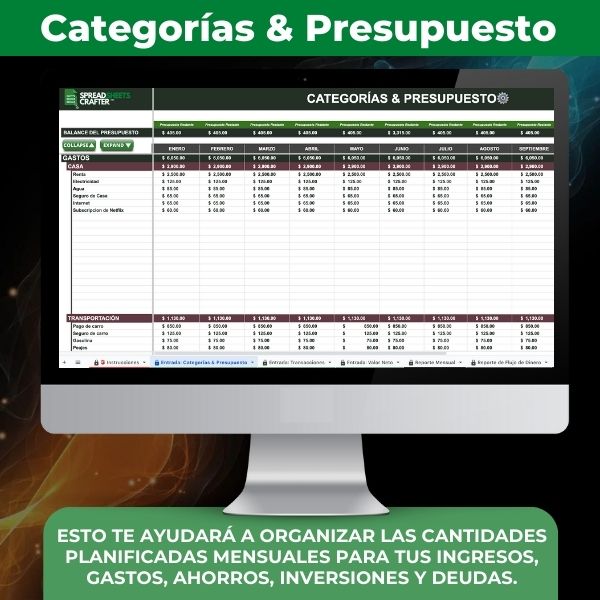 Es tu presupuesto, así que hazlo a tu manera. Personaliza colores, fuentes, categorías y subcategorías según tus preferencias y necesidades.
