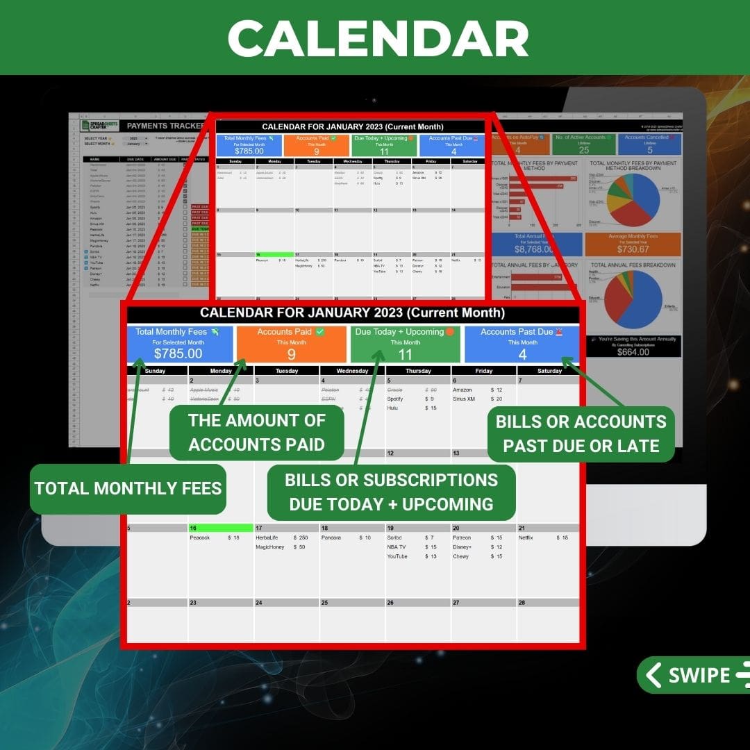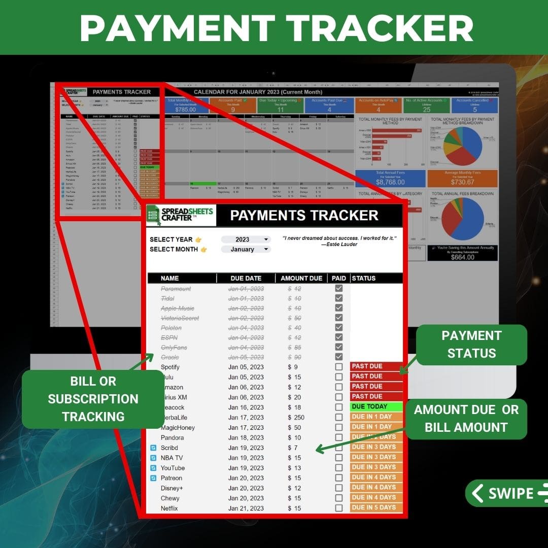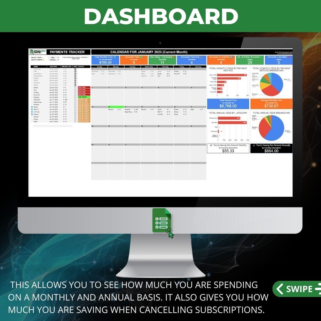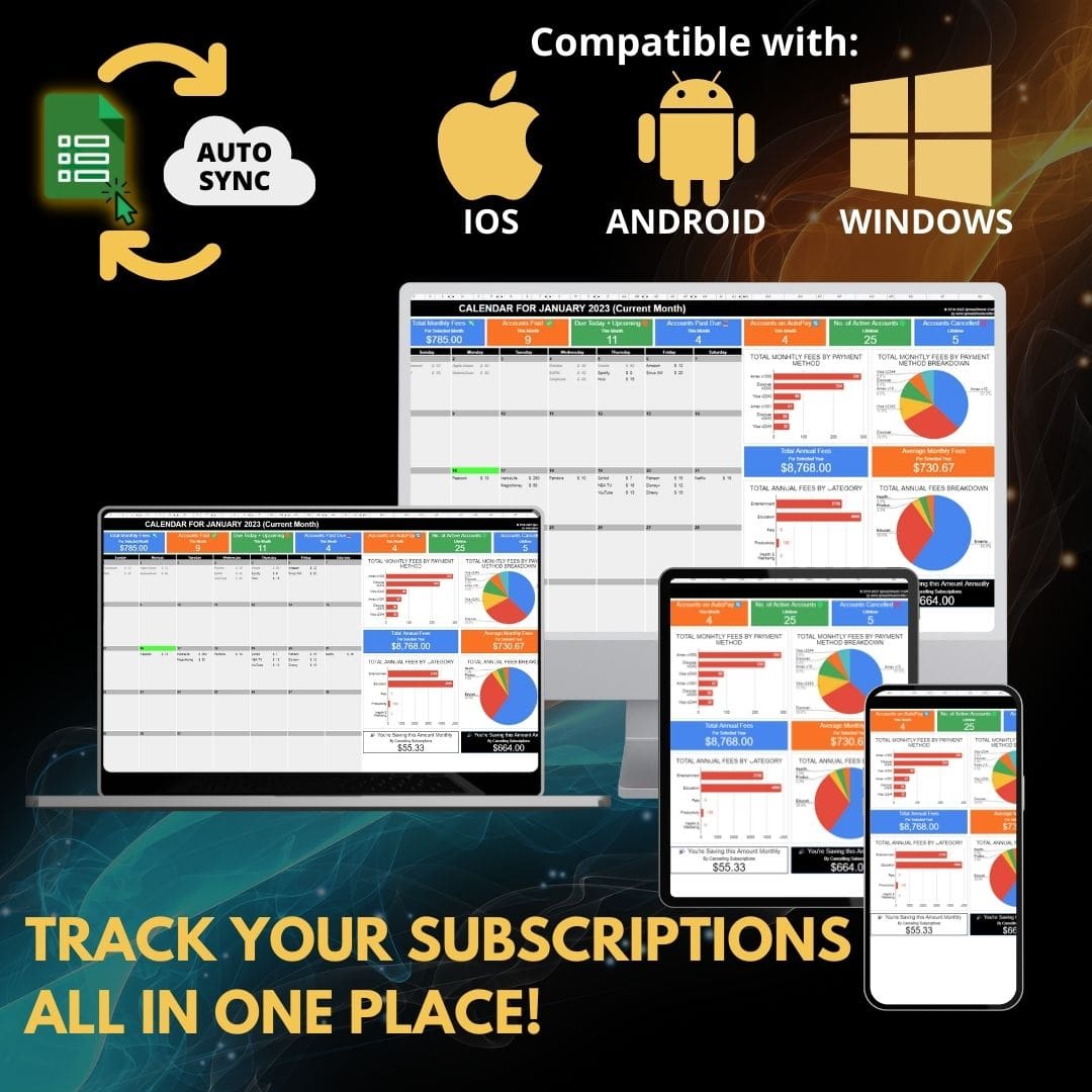 Este rastreador de suscripciones le ayudará a realizar un seguimiento de los cargos recurrentes (facturas y suscripciones), realizar un seguimiento de sus pagos y evitar cargos por pagos atrasados y sobregiros.
