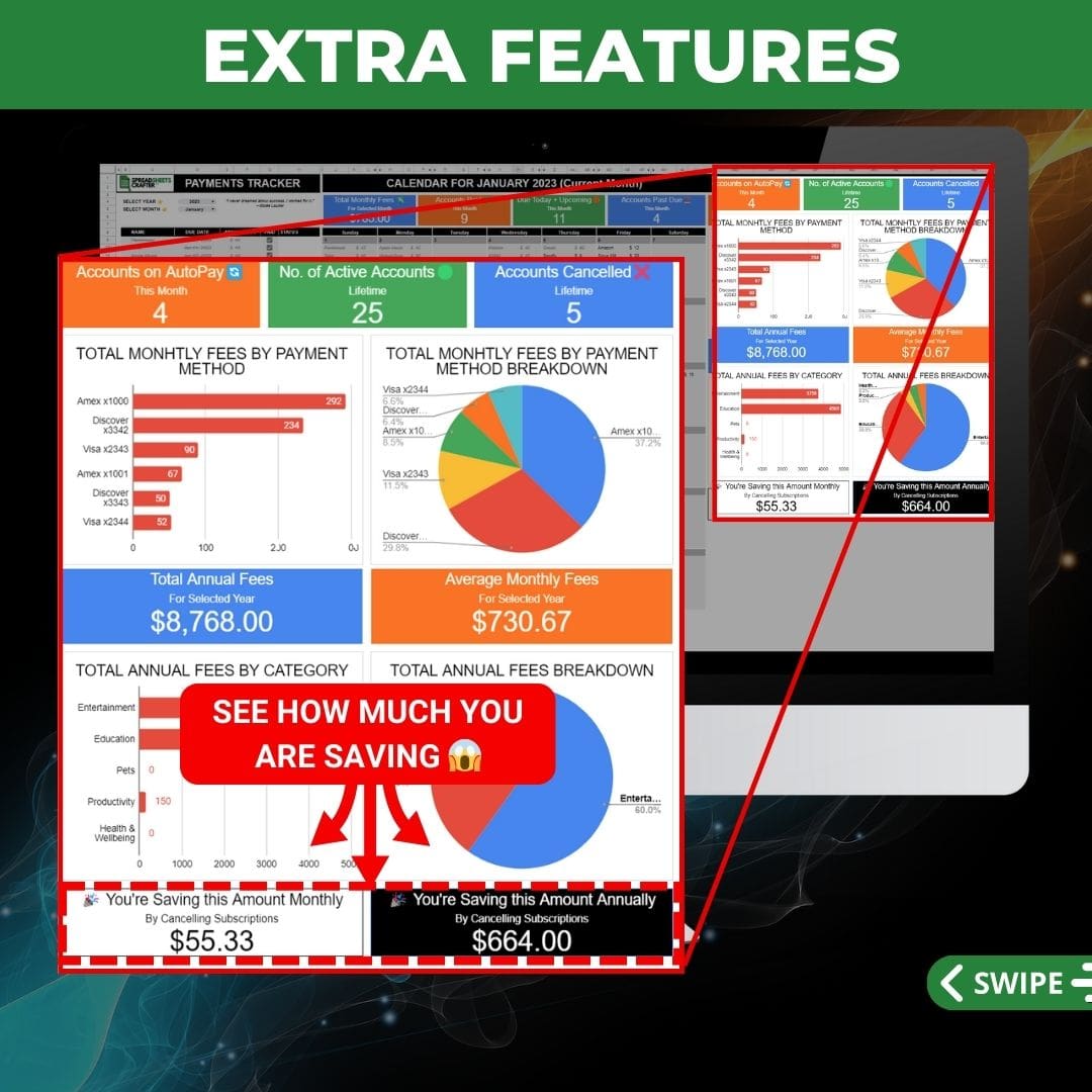✅ Vea cuánto ahorrará al cancelar suscripciones (mensuales y anuales)