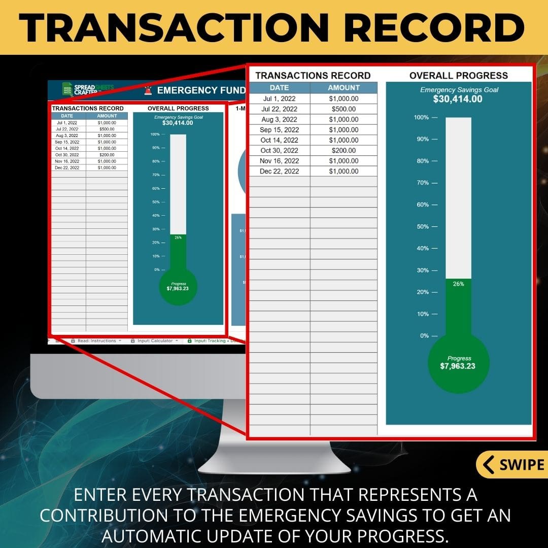 ✅ 3. START TRACKING: enter all the saving deposit in the transaction record table. Use the dashboard to visually understand your progress.
