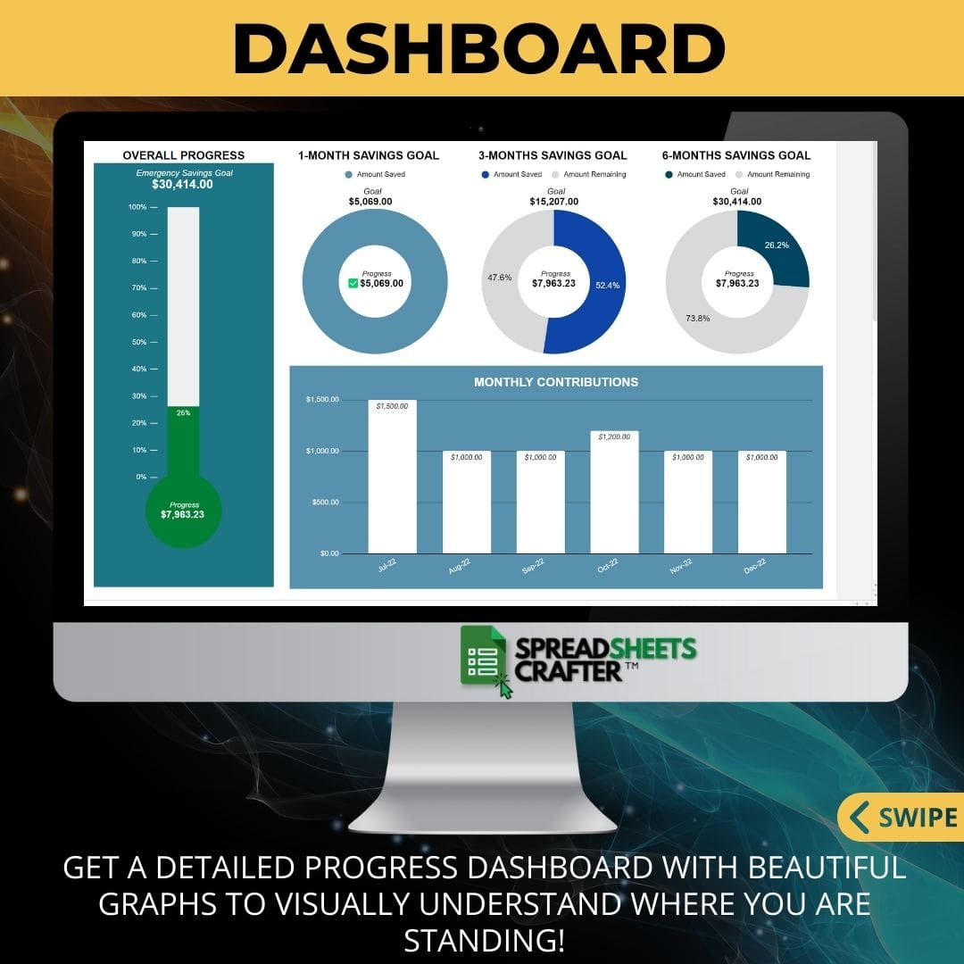 This Emergency Fund Calculator and Tracker will help you to determine your saving goal amount, track your progress, and display everything in beautiful graphs.