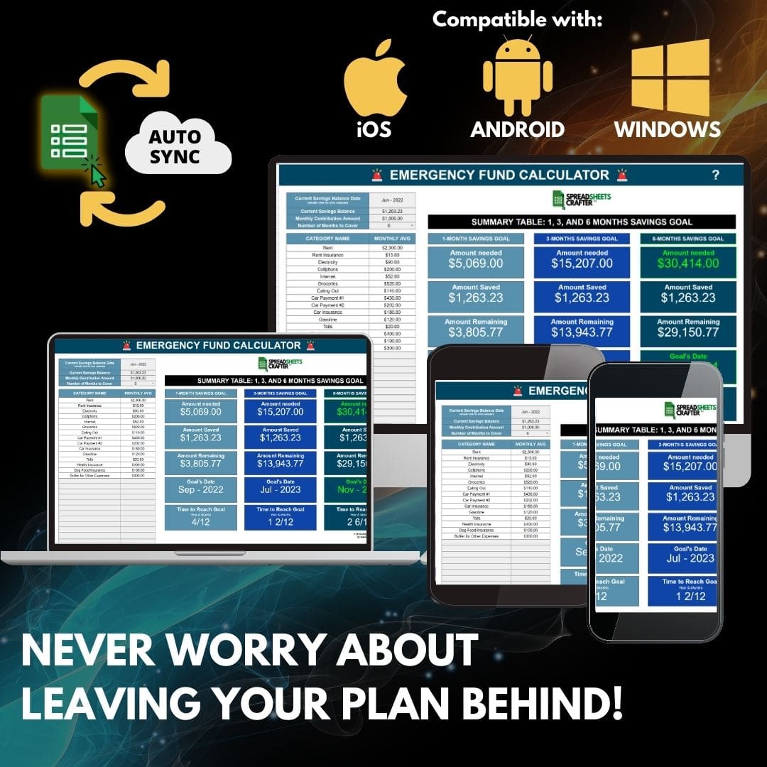 Our emergency fund calculator and tracker is easily accessible anytime and anywhere with any device. You will never need to worry about leaving your plan behind.