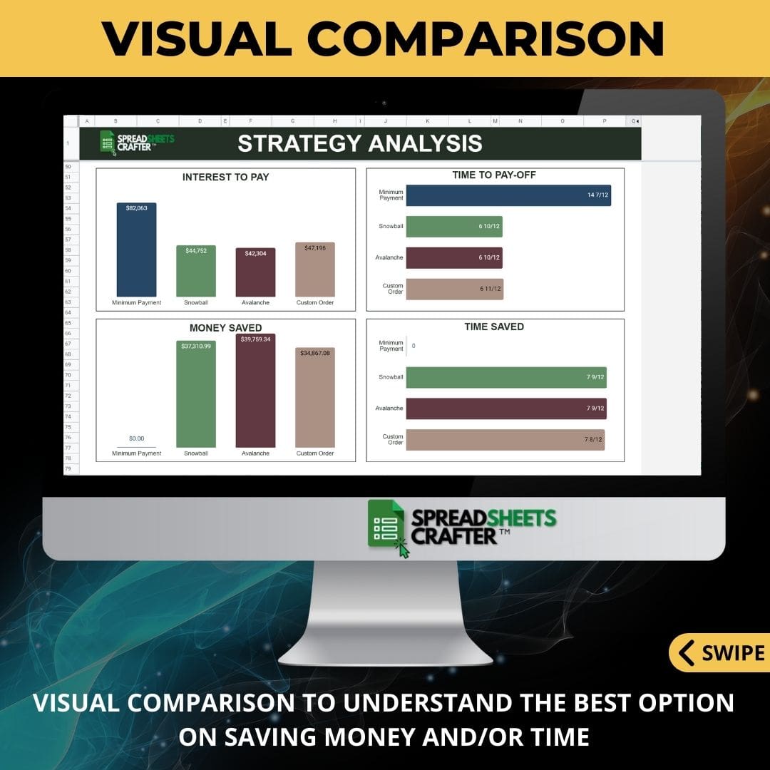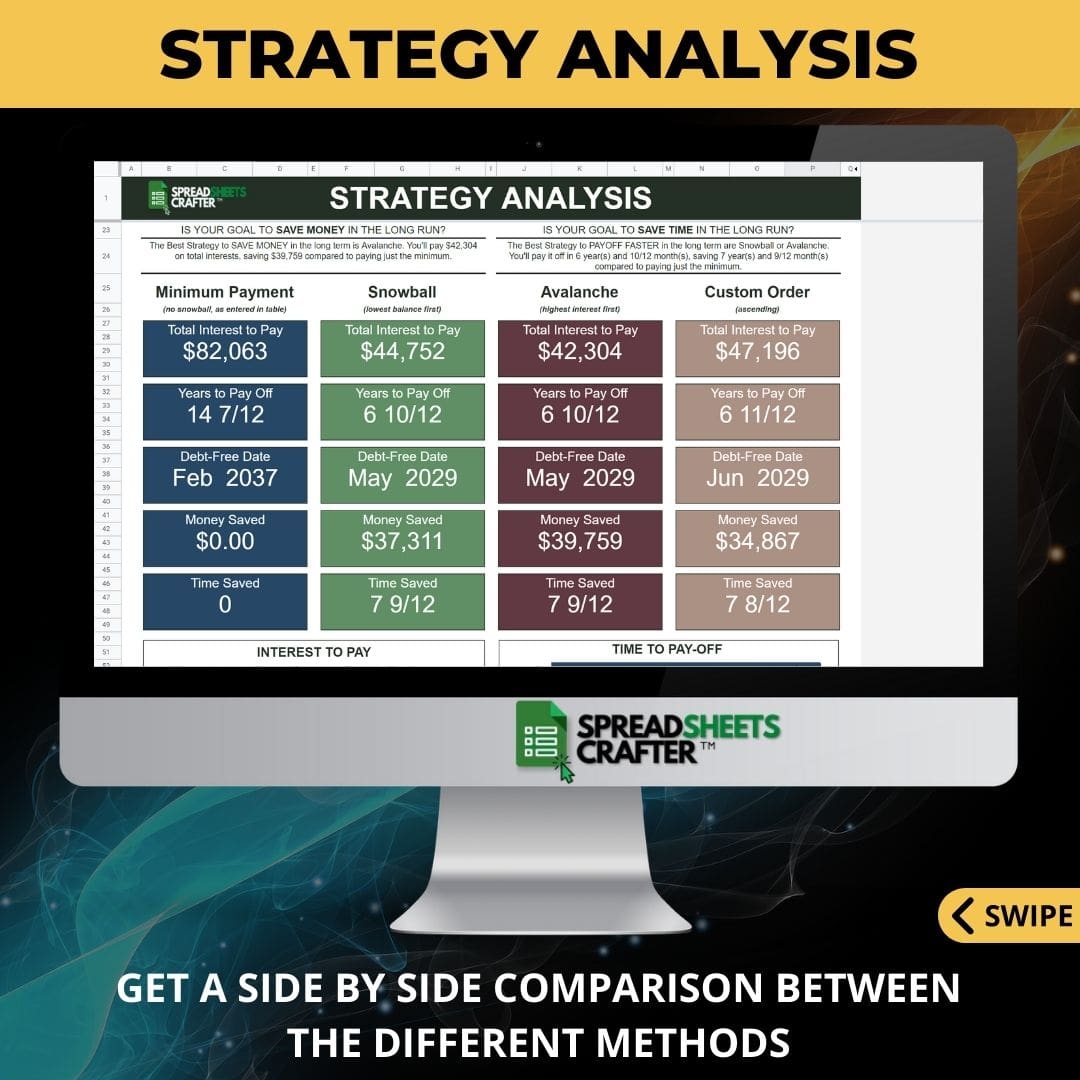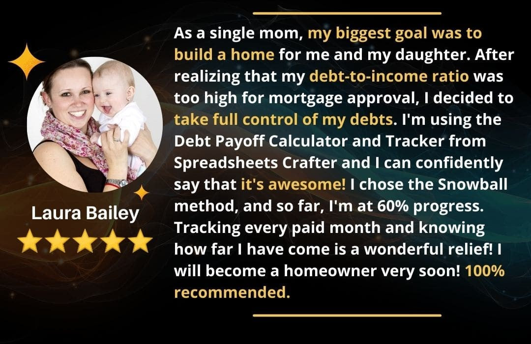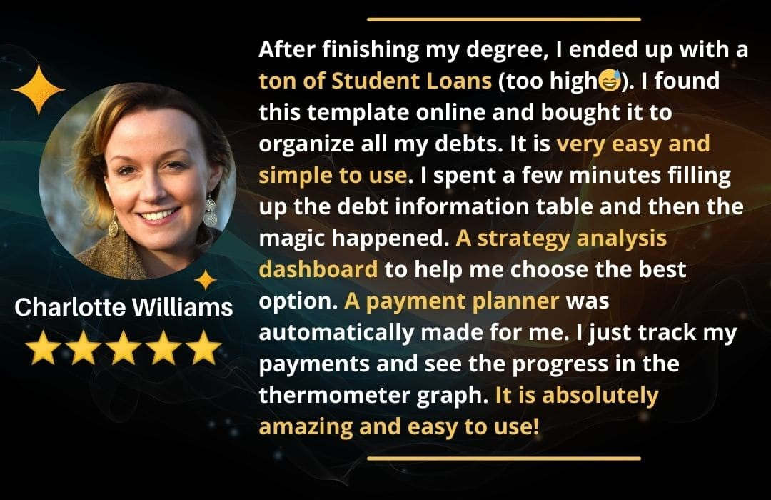 This debt payoff calculator and tracker is the perfect tool for that. You can analyze different options, choose a plan, and track your progress while you become debt-free.