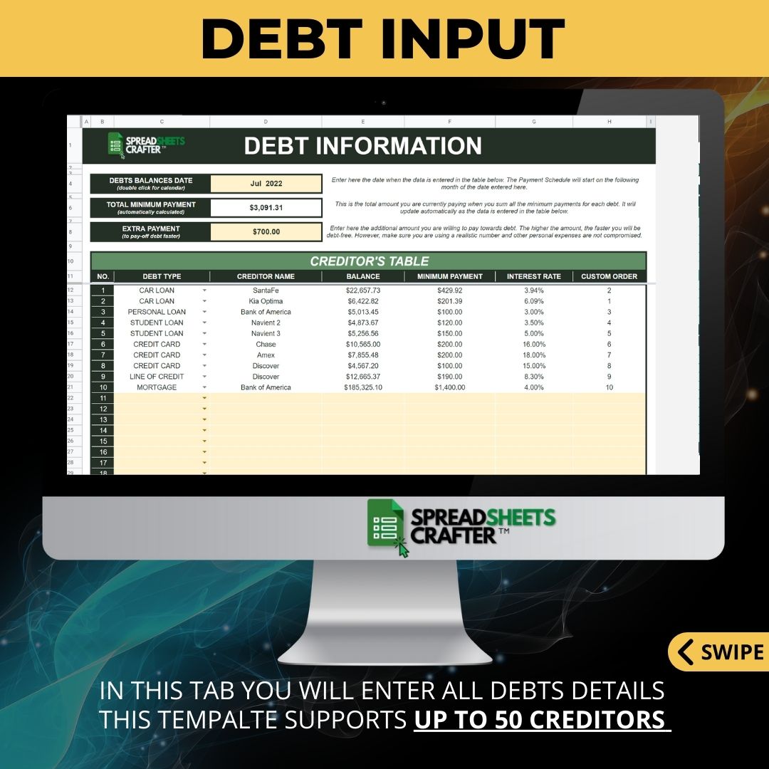 ✅ 1. INPUT DEBT INFORMATION: List all your debts with details of minimum payment, interest rate, and current balance